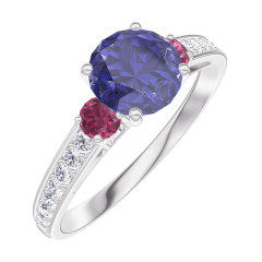 « L'ATELIER » NR. 166048Ring Weißgold 375/-(9Kt) - Blauer Saphir rund 0.7 Karat - Seitliche Steine Rubin - Fassung Diamant 4.9 (7)