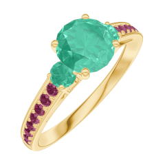 « L'ATELIER » NR. 166690Ring Gelbgold 375/-(9Kt) - Smaragd rund 0.7 Karat - Seitliche Steine Smaragd - Fassung Rubin 4.9 (7)