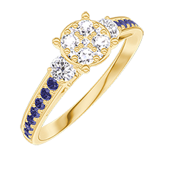 « L'ATELIER » Nº210234Ring Gelbgold 375/-(9Kt) - Pavé aus natürlichen Diamanten rund entsprechend 0.7 - Seitliche Steine Diamant - Fassung Blauer Saphir 4.9 (7)