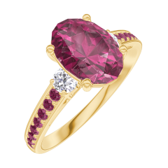 « L'ATELIER » NR. 168129Ring Gelbgold 750/-(18Kt) - Rubin Oval 1 Karat - Seitliche Steine Diamant - Fassung Rubin 4.7 (10)