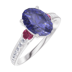 « L'ATELIER » NR. 168747Ring Weißgold 750/-(18Kt) - Blauer Saphir Oval 1 Karat - Seitliche Steine Rubin - Fassung Diamant 4.7 (9)