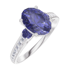 « L'ATELIER » NR. 168768Ring Weißgold 375/-(9Kt) - Blauer Saphir Oval 1 Karat - Seitliche Steine Blauer Saphir - Fassung Diamant 4.7 (9)