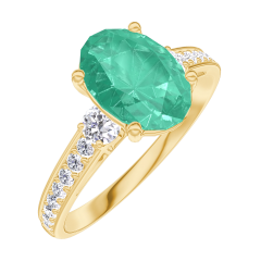 « L'ATELIER » NR. 169326Ring Gelbgold 375/-(9Kt) - Smaragd Oval 1 Karat - Seitliche Steine Diamant - Fassung Diamant 4.7 (9)