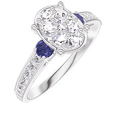 « L'ATELIER » NR. 211168Ring Weißgold 375/-(9Kt) - Pavé aus natürlichen Diamanten Oval entsprechend 1 - Seitliche Steine Blauer Saphir - Fassung Diamant 4.7 (10)