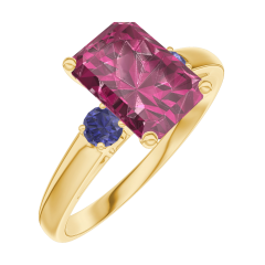 « L'ATELIER » NR. 168061Ring Gelbgold 750/-(18Kt) - Rubin Rechteckig 1 Karat - Seitliche Steine Blauer Saphir 4.5 (8)