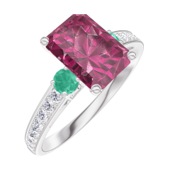 « L'ATELIER » NR. 168088Ring Weißgold 375/-(9Kt) - Rubin Rechteckig 1 Karat - Seitliche Steine Smaragd - Fassung Diamant 4.5 (8)