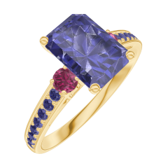 « L'ATELIER » NR. 168653Ring Gelbgold 750/-(18Kt) - Blauer Saphir Rechteckig 1 Karat - Seitliche Steine Rubin - Fassung Blauer Saphir 4.6 (5)