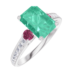 « L'ATELIER » NR. 169247Ring Weißgold 750/-(18Kt) - Smaragd Rechteckig 1 Karat - Seitliche Steine Rubin - Fassung Diamant 4.4 (8)