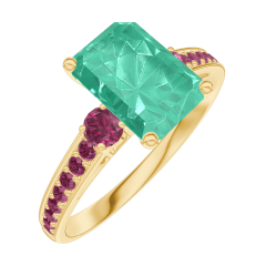 « L'ATELIER » NR. 169249Ring Gelbgold 750/-(18Kt) - Smaragd Rechteckig 1 Karat - Seitliche Steine Rubin - Fassung Rubin 4.6 (5)