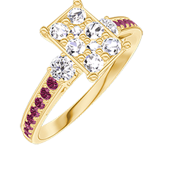 « L'ATELIER » NR. 211029Ring Gelbgold 750/-(18Kt) - Pavé aus natürlichen Diamanten Rechteckig entsprechend 1 - Seitliche Steine Diamant - Fassung Rubin 4.4 (8)