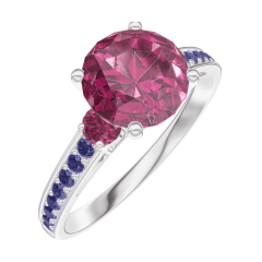 « L'ATELIER » NR. 167856Ring Weißgold 375/-(9Kt) - Rubin rund 1 Karat - Seitliche Steine Rubin - Fassung Blauer Saphir 4.9 (14)