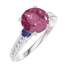 « L'ATELIER » NR. 167868Ring Weißgold 375/-(9Kt) - Rubin Rund 1 Karat - Seitliche Steine Blauer Saphir - Fassung Diamant 4.7 (15)