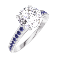 « L'ATELIER » NR. 187215Ring Weißgold 750/-(18Kt) - Labordiamant rund 1 Karat - Fassung Blauer Saphir 4.8 (14)