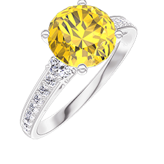 « L'ATELIER » NR. 192653Ring Weißgold 750/-(18Kt) - Gelber Saphir rund 1 Karat - Seitliche Steine Diamant - Fassung Diamant 4.7 (15)
