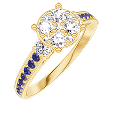 « L'ATELIER » Nº210833Ring Gelbgold 750/-(18Kt) - Pavé aus natürlichen Diamanten rund entsprechend 1 - Seitliche Steine Diamant - Fassung Blauer Saphir 4.8 (14)