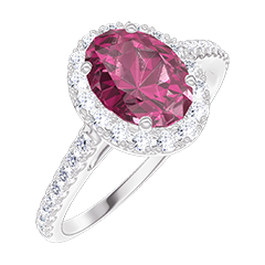 « L'ATELIER » NR. 1006502Ring Weißgold 750/-(18Kt) - Synthetischer Rubin Oval 0.5 Karat - Halo Labordiamant - Fassung Labordiamant 4.5 (12)