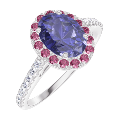 « L'ATELIER » NR. 170744Ring Weißgold 375/-(9Kt) - Blauer Saphir Oval 0.5 Karat - Halo Rubin - Fassung Diamant 4.5 (12)