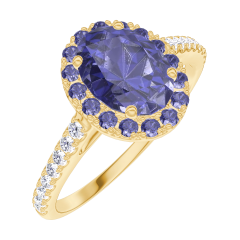 « L'ATELIER » NR. 170758Ring Gelbgold 375/-(9Kt) - Blauer Saphir Oval 0.5 Karat - Halo Blauer Saphir - Fassung Diamant 4.8 (12)