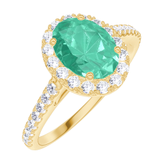 « L'ATELIER » NR. 171013Ring Gelbgold 750/-(18Kt) - Smaragd Oval 0.5 Karat - Halo Diamant - Fassung Diamant 4.5 (12)