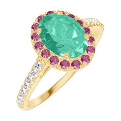 « L'ATELIER » NR. 171030Ring Gelbgold 375/-(9Kt) - Smaragd Oval 0.5 Karat - Halo Rubin - Fassung Diamant 4.5 (12)