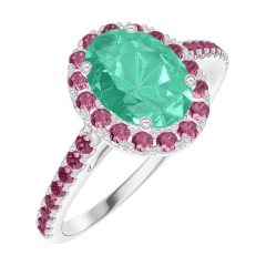 « L'ATELIER » NR. 171035Ring Weißgold 750/-(18Kt) - Smaragd Oval 0.5 Karat - Halo Rubin - Fassung Rubin 4.5 (12)
