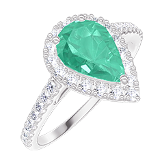 « L'ATELIER » NR. 1007126Ring Weißgold 750/-(18Kt) - Synthetischer Smaragd Tropfen 0.5 Karat - Halo Labordiamant - Fassung Labordiamant 4.9 (14)