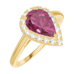 « L'ATELIER » NR. 170482Ring Gelbgold 375/-(9Kt) - Rubin Tropfen 0.5 Karat - Halo Diamant 4.8 (13)