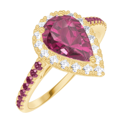 « L'ATELIER » NR. 170490Ring Gelbgold 375/-(9Kt) - Rubin Tropfen 0.5 Karat - Halo Diamant - Fassung Rubin 5 (13)