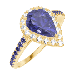 « L'ATELIER » NR. 170782Ring Gelbgold 375/-(9Kt) - Blauer Saphir Tropfen 0.5 Karat - Halo Diamant - Fassung Blauer Saphir 4.8 (13)