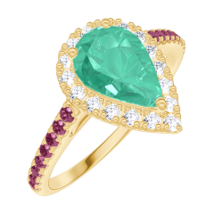 « L'ATELIER » NR. 171065Ring Gelbgold 750/-(18Kt) - Smaragd Tropfen 0.5 Karat - Halo Diamant - Fassung Rubin 4.8 (13)
