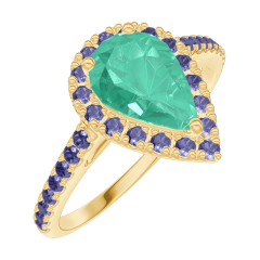 « L'ATELIER » NR. 171101Ring Gelbgold 750/-(18Kt) - Smaragd Tropfen 0.5 Karat - Halo Blauer Saphir - Fassung Blauer Saphir 4.8 (13)