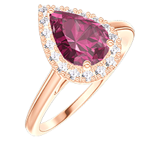 « L'ATELIER » NR. 175802Ring Roségold 750/-(18Kt) - Rubin Tropfen 0.5 Karat - Halo Diamant 4.8 (13)
