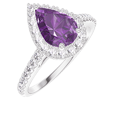 « L'ATELIER » NR. 218495Ring Weißgold 375/-(9Kt) - Amethyst Tropfen 0.5 Karat - Halo Diamant - Fassung Diamant 4.8 (13)