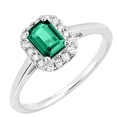 « L'ATELIER » NR. 1007026Ring Weißgold 750/-(18Kt) - Synthetischer Smaragd Rechteckig 0.5 Karat - Halo Labordiamant 4.8 (49)