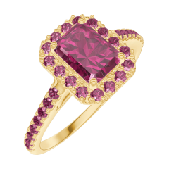 « L'ATELIER » NR. 170409Ring Gelbgold 750/-(18Kt) - Rubin Rechteckig 0.5 Karat - Halo Rubin - Fassung Rubin 4.7 (47)