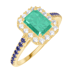 « L'ATELIER » NR. 170974Ring Gelbgold 375/-(9Kt) - Smaragd Rechteckig 0.5 Karat - Halo Diamant - Fassung Blauer Saphir 4.9 (49)