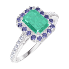 « L'ATELIER » NR. 170999Ring Weißgold 750/-(18Kt) - Smaragd Rechteckig 0.5 Karat - Halo Blauer Saphir - Fassung Diamant 4.7 (47)