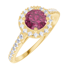« L'ATELIER » NR. 170294Ring Gelbgold 375/-(9Kt) - Rubin rund 0.5 Karat - Halo Diamant - Fassung Diamant 4.7 (18)