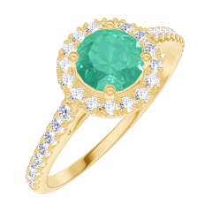 « L'ATELIER » NR. 170869Ring Gelbgold 750/-(18Kt) - Smaragd rund 0.5 Karat - Halo Diamant - Fassung Diamant 4.7 (18)