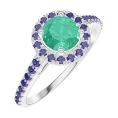 « L'ATELIER » NR. 170911Ring Weißgold 750/-(18Kt) - Smaragd rund 0.5 Karat - Halo Blauer Saphir - Fassung Blauer Saphir 4.7 (18)