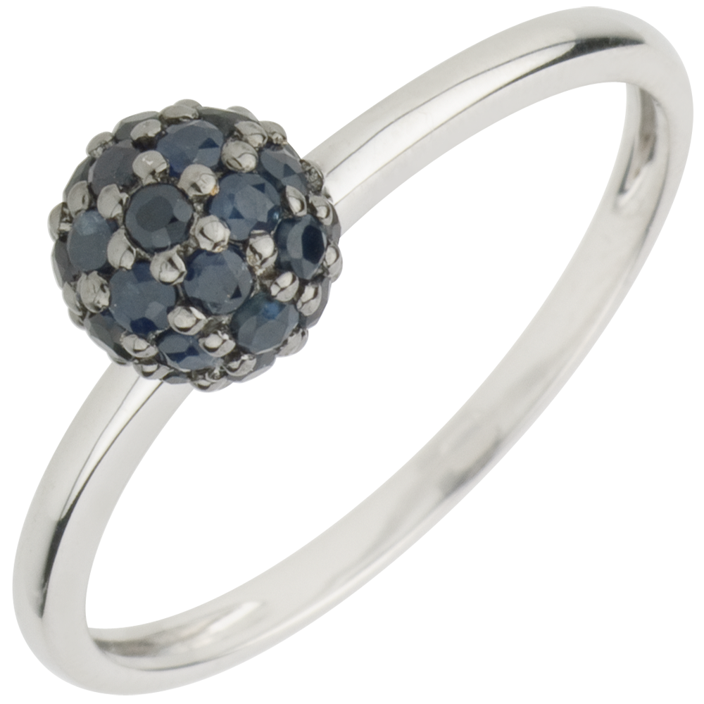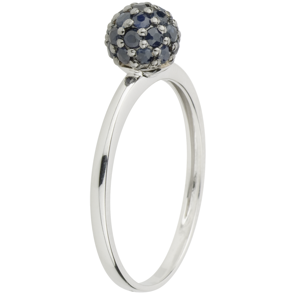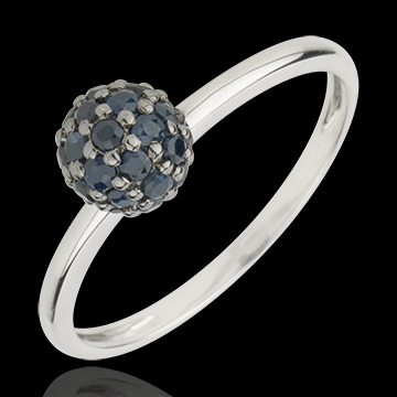 Ring Paradiesvogel - Kugel - Weißgold und Blauer Saphir