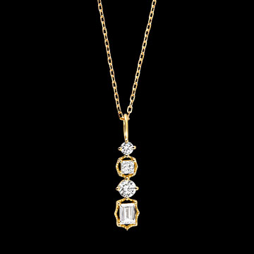 Vier strahlende Diamanten sind in einem harmonischen Zusammenspiel von Größen und Reflexionen angeordnet.Ein zarter, raffinierter Anhänger, der das Licht modern und stilvoll einfängt. Mit Kette 42 cm + Verlängerung von 3 cm; 375/-. Gelbgold (375/-): 2.1 g. Labordiamant : 4 - Total: 0.57 Karat Weitere Abmessungen