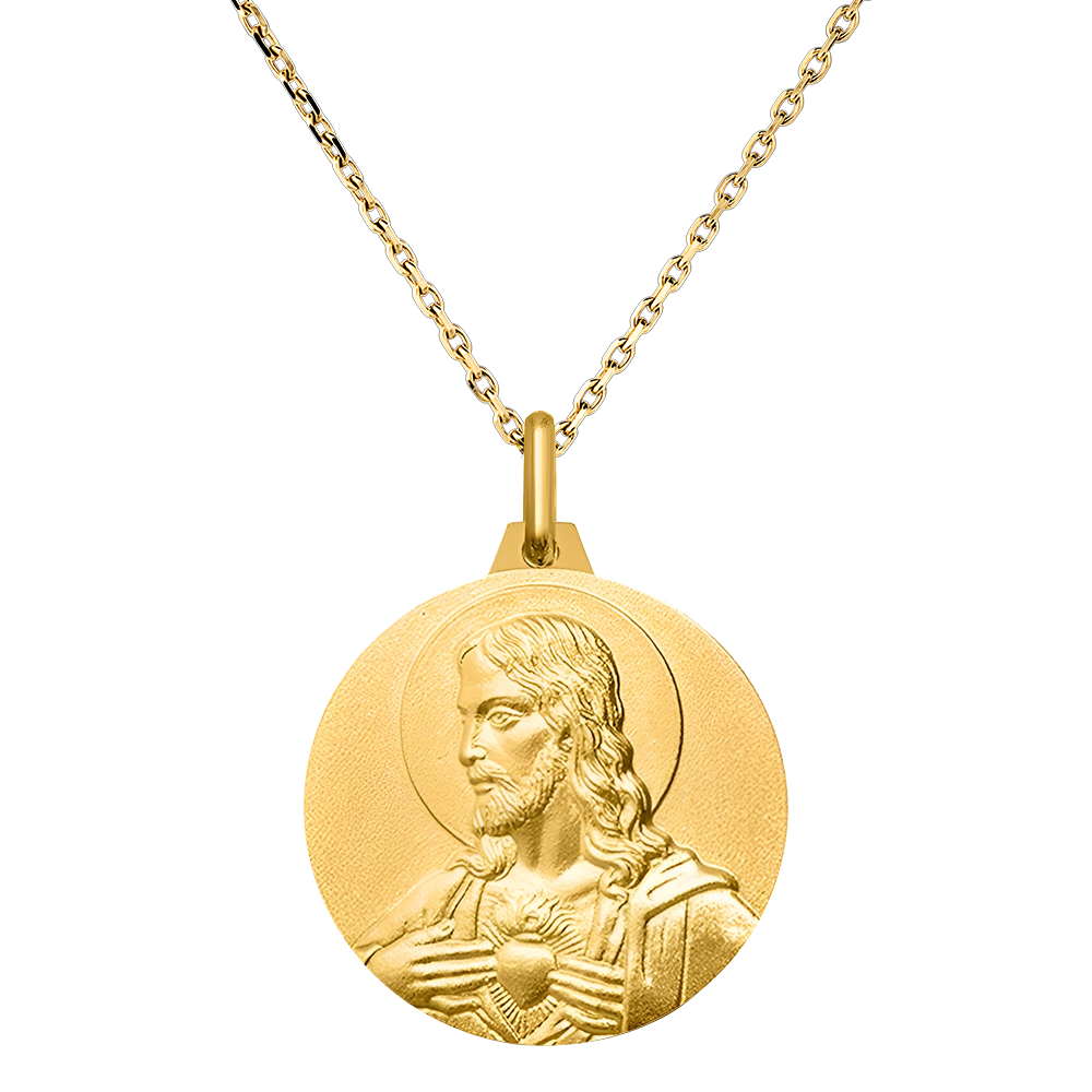 Medaille des Heiligsten Herzens und der Jungfrau Maria – 18-karätiges Gelbgold