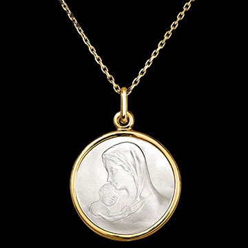 Medaille Mütterliche Liebe – 18-karätiges Gelbgold und Perlmutt