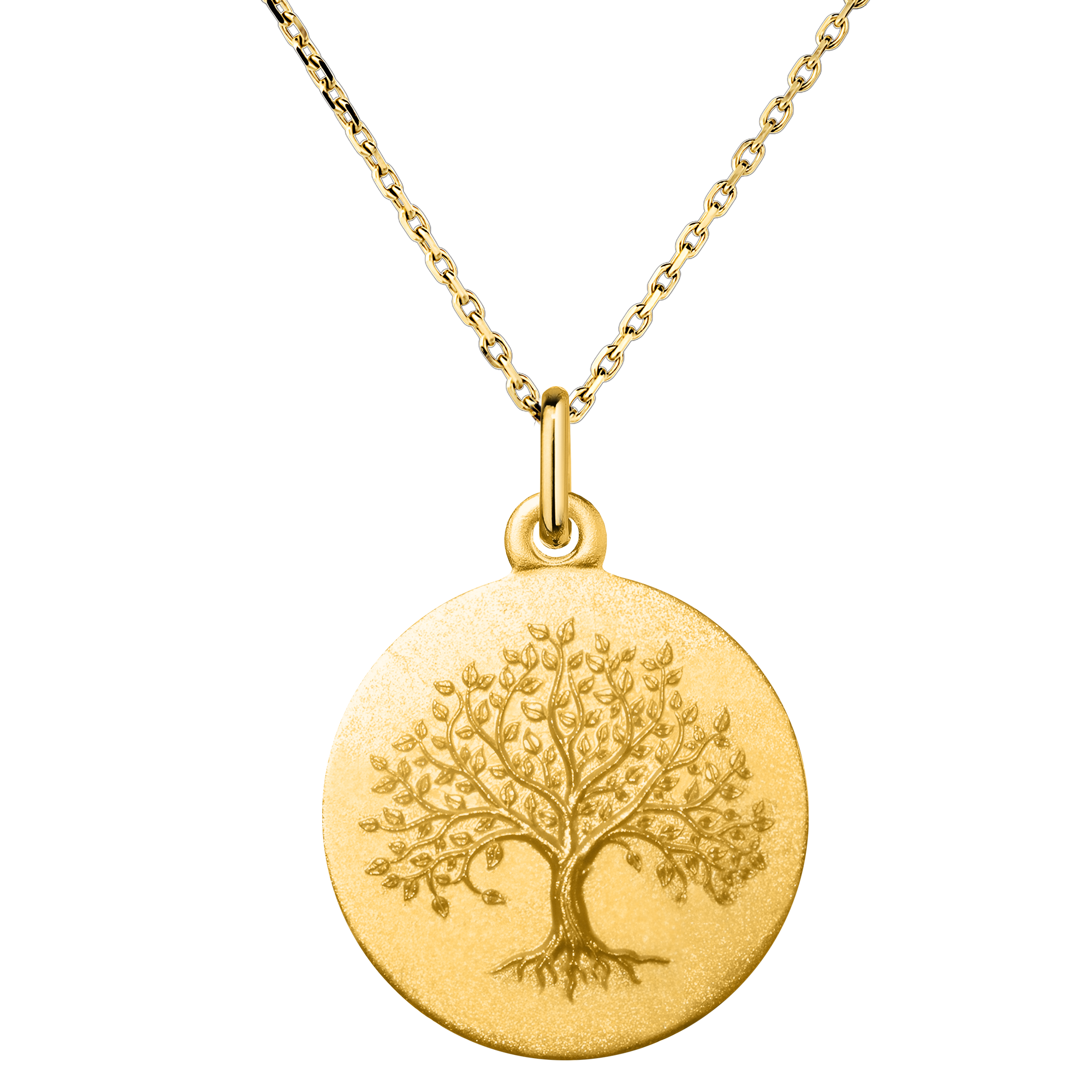 Diese Medaille aus 18-karätigem Gelbgold zeigt einen erhabenen Lebensbaum, der Stärke, Wachstum und die Verbindung zwischen tiefen Wurzeln und zum Himmel strebenden Ästen symbolisiert. Das elegante und schlichte Design steht für Weisheit, Gleichgewicht und Regeneration. Dieses symbolische Schmuckstück eignet sich für den täglichen Gebrauch oder als Geschenk für besondere Anlässe. Die Oberfläche ist mit einem sandgestrahlten Goldrelief veredelt und die Rückseite kann individuell graviert werden. Geliefert wird die Medaille in einem eleganten Etui.… Mehr sehen Technische Informationen