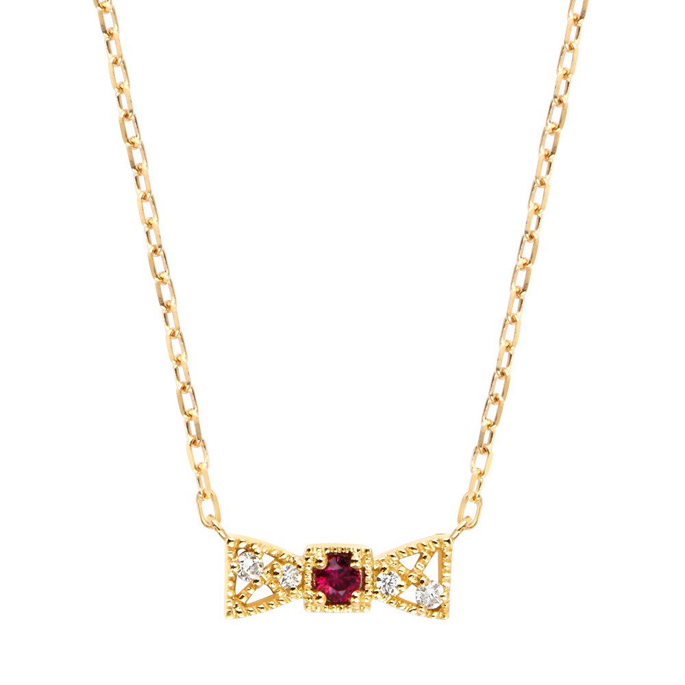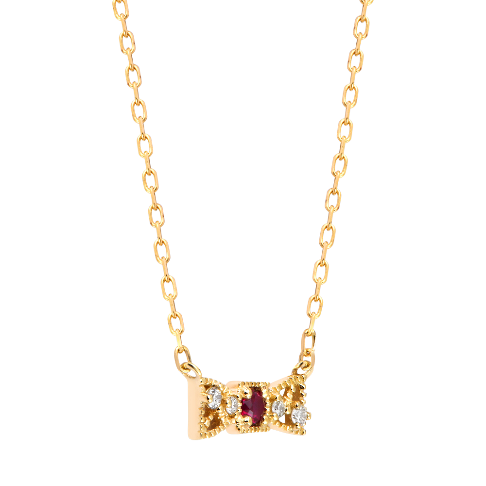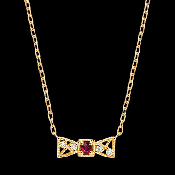 VIELFALT NR. 25Collier Schleife - Gelbgold 375/-(9Kt) - Synthetischer Rubin, Labordiamant ID : 3901