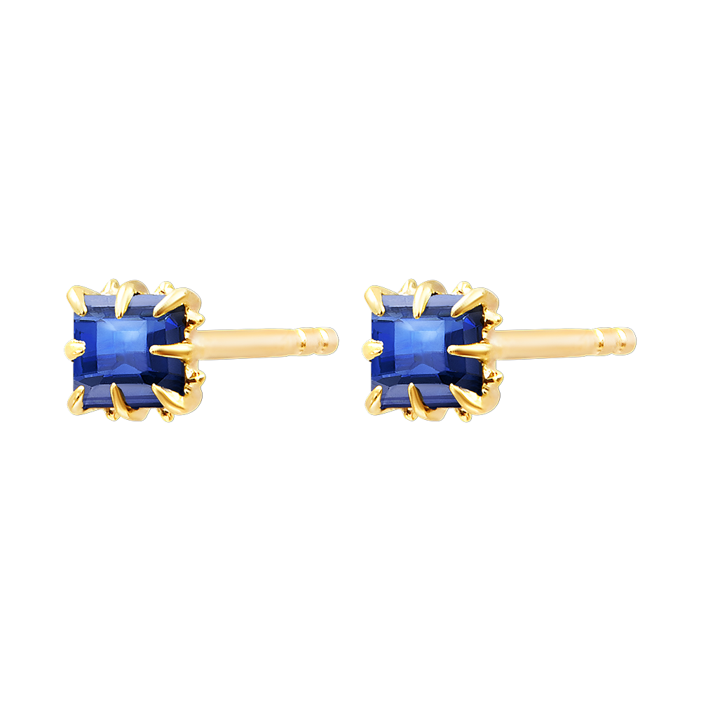 PARADIESVOGEL NR. 51Ohrstecker - Gelbgold 375/-(9Kt) - Synthetischer Saphir ID : 1600