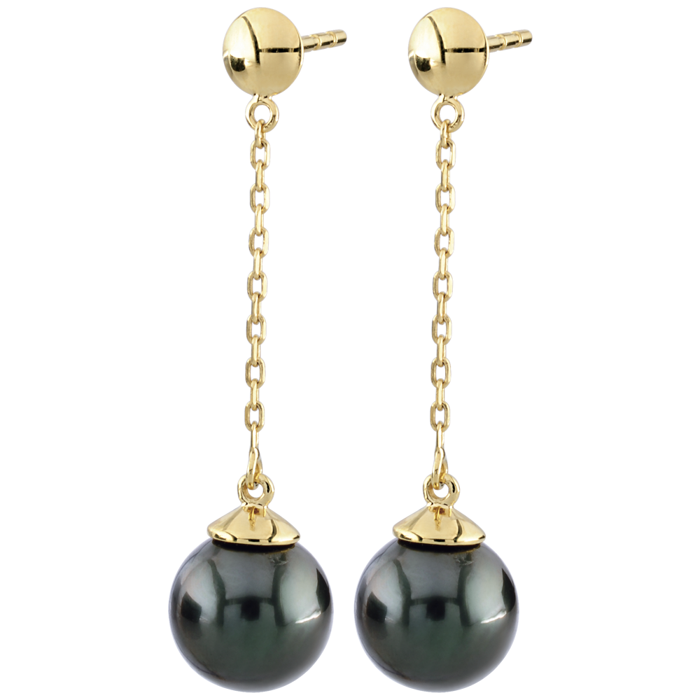 Zwei wunderschöne Perlen hängen an einer Kette aus Gold.
