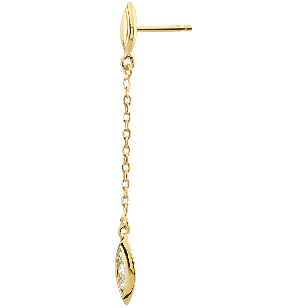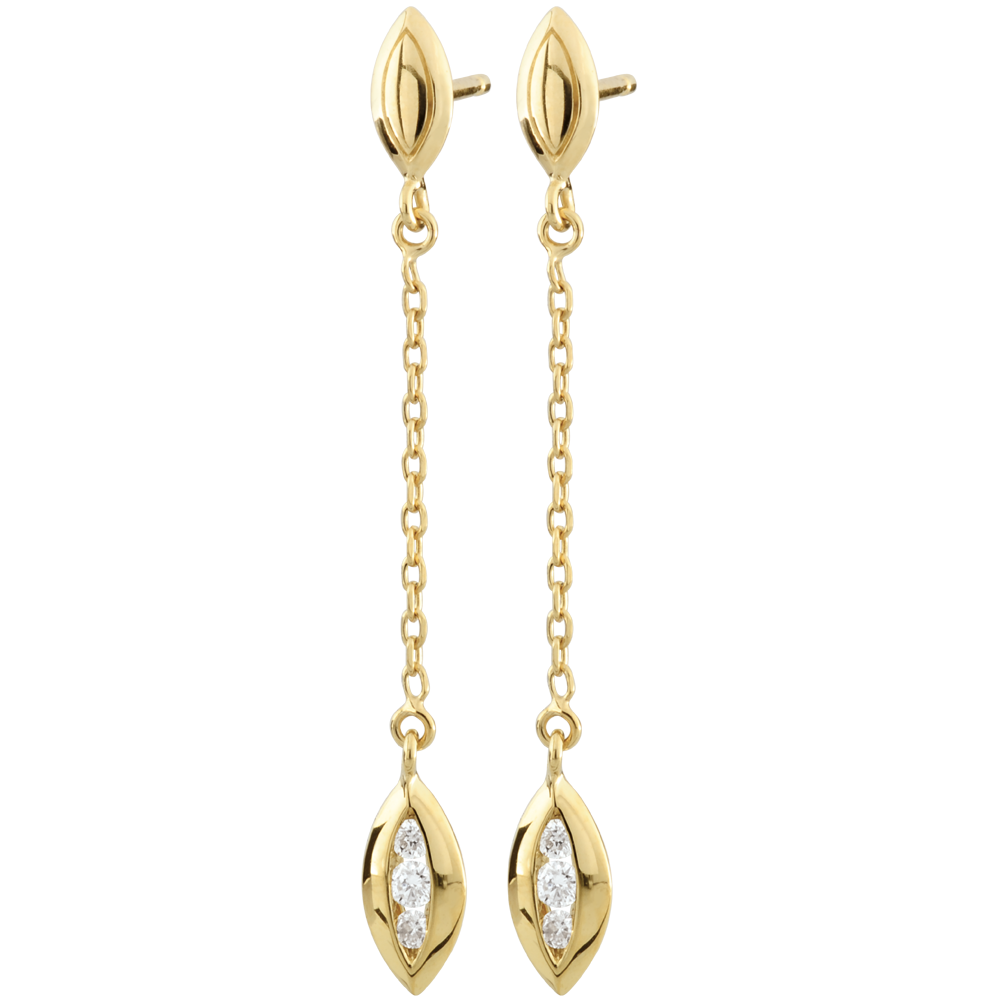 Ohrhänger mit einer Trilogie, umrandet von einem Rahmen aus Gold.
