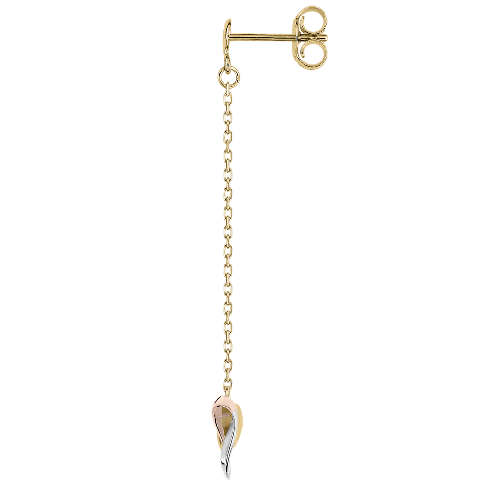 Das Herz - Ikone des Juwelierhandwerks - wurde von Edenly in einer Origami-Version überarbeitet, in der sich die drei Goldfarben mit Originalität und Eleganz verbinden. Hier ein Modell von Ohrringen mit Kettchen, welche die sanften und weichen Bewegungen des Gesichts begleiten.